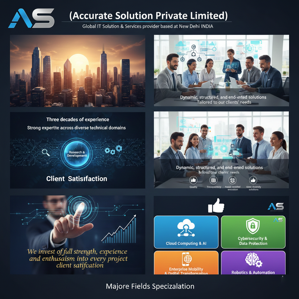 - AS (Accurate Solution Private Limited) is global IT Solution & Services provider based at New Delhi INDIA. With nearly three decades of experience in the IT industry, we have built strong expertise across diverse technical domains, with a core focus on research and development.
